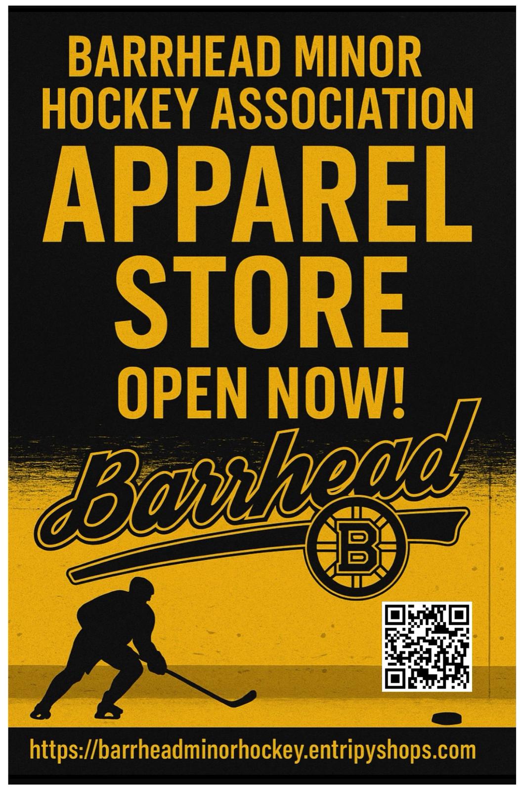 Barrhead Minor Hockey Association Apparel! Link to order can also be found under the INFO tab.